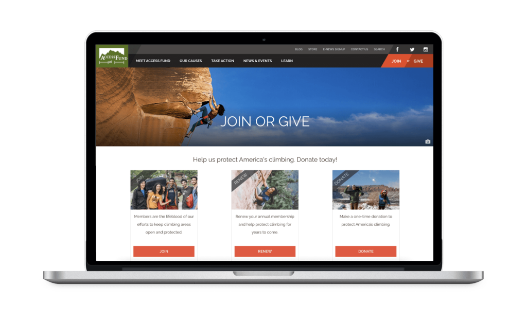 We know many of you support both Local and National access organizations. Here’s a chance to combine both memberships into one easy sign up process. Click the button below. This will take you to the Access Fund website where you will have the options to Join (for new members), Renew (for current Joint members) or Give (a one time or recurring monthly contribution).